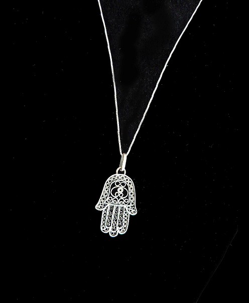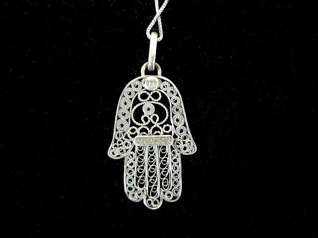 BURNED SILVER FILIGREE HAMSA #731