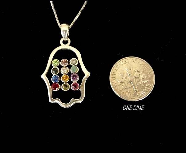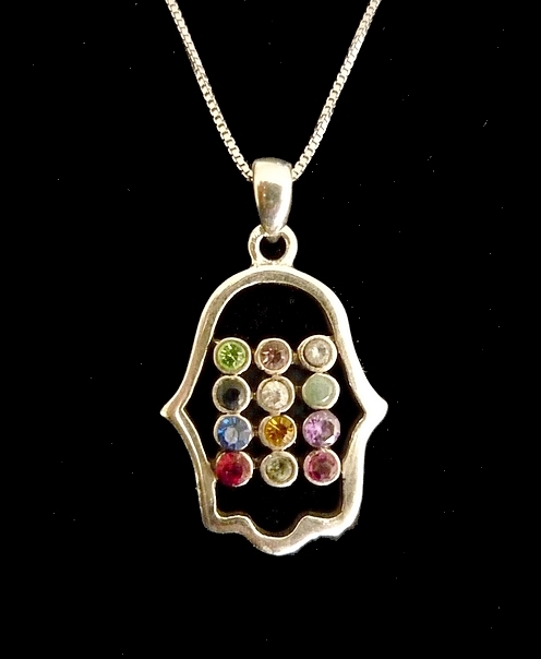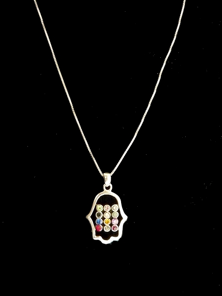 This meaningful sterling silver Hamsa necklace, bears the HOSHEN, Breastplate worn by the Sacred High priest, lending a traditional and classic feeling.