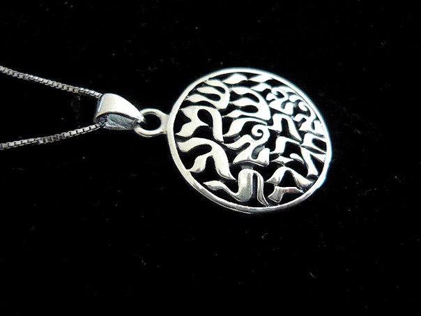 This meaningful sterling silver unisex necklace, of the Shema Israel prayer, has a circular band on the outside, symbolic of eternity, totality and wholeness, and in the inside, spell out in Hebrew "Shema Israel Adonai Elokeinu Adonai Echad" . (Hear, O Israel, Hashem is our G-d, Hashem is One) (Deuteronomy 6:4),