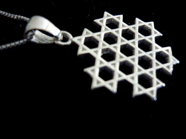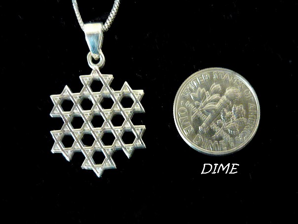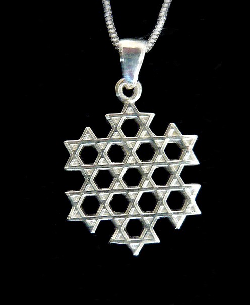 This meaningful classic sterling silver STAR OF DAVID necklace. unisex style, has a smooth polished modern finish. It features 13 Stars of David overlap forming also the shape of a Star of David. This necklace is something anyone would love to wear. The Star of David is a six pointed figure that has two interlaced triangles. This symbol universally represents the connection of the soul with the Creator through study and learning of Kabbalah. The Star of David shows great strength and perseverance.
