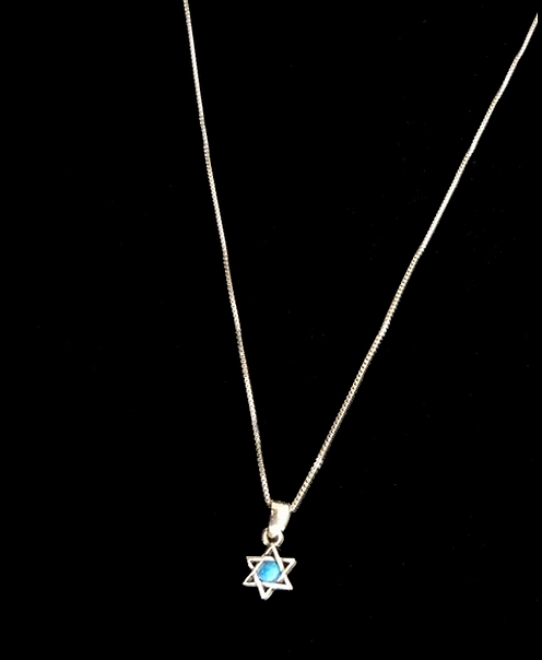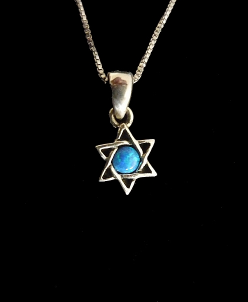 This meaningful modern sterling silver STAR OF DAVID necklace. unisex style, with an opal stone in the front, has a smooth polished modern finish. This necklace is something anyone would love to wear. The Star of David is a six pointed figure that has two interlaced triangles. This symbol universally represents the connection of the soul with the Creator through study and learning the teachings of Kabbalah. The Star of David shows great strength and perseverance.