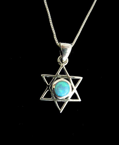 This meaningful modern sterling silver STAR OF DAVID necklace. unisex style, with an opal stone in the front, has a smooth polished modern finish. This necklace is something anyone would love to wear. The Star of David is a six pointed figure that has two interlaced triangles. This symbol universally represents the connection of the soul with the Creator through study and learning the teachings of Kabbalah. The Star of David shows great strength and perseverance.