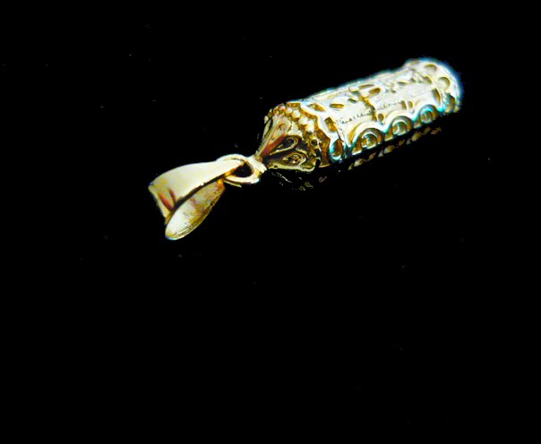 This meaningful 14 K gold plated unisex Mezuza necklace, features the letter SHIN in the front, the letter SHIN Icarries an important symbolism in Judaism, originates in the hebrew word for one of the names of HaShem. Jewelry bearing the symbol of SHIN will always be a welcome present. Wishing good, long , and prosperous life to our loved ones, and friends.