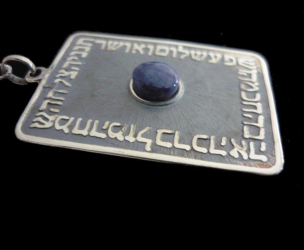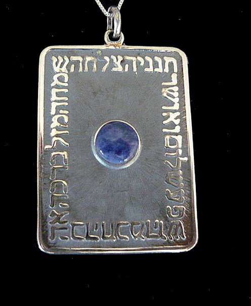 silver TNENI necklace with a Lapis Lazuli stone on the front, features a