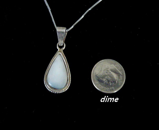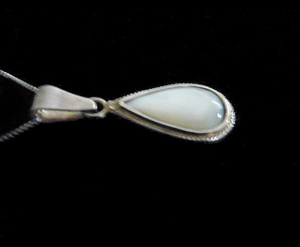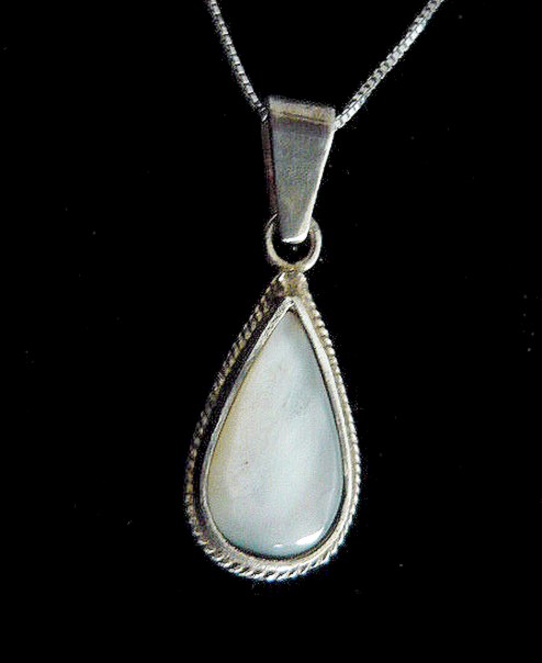 This stunning Drop shape sterling silver necklace with Mother Pearl a member of the same group of shellfish as scallops and clams, has been used decoratively for many years. The Mother Pearl is the focal point of this handcrafted necklace. The stone is wrapped in solid sterling silver wire