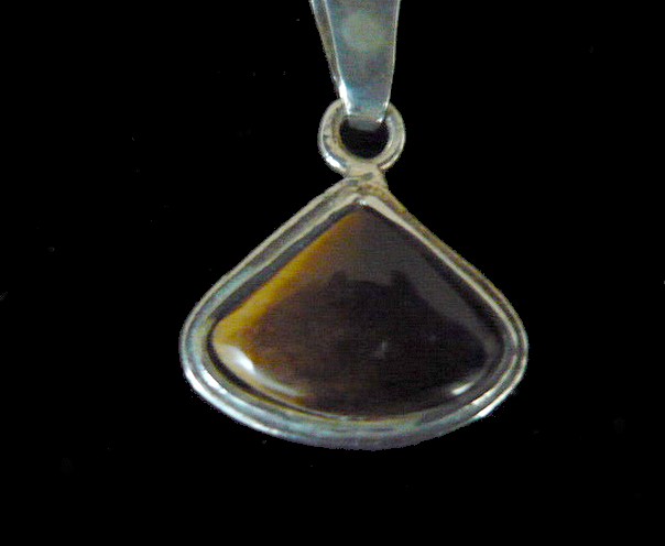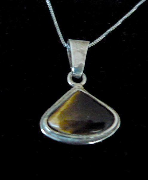 This stunning triangle shape sterling silver Tiger Eye necklace, featuring the tiger eye stone , has been used decoratively for many years. The Tiger Eye is the focal point of this handcrafted necklace. The stone is wrapped in solid sterling silver wire.