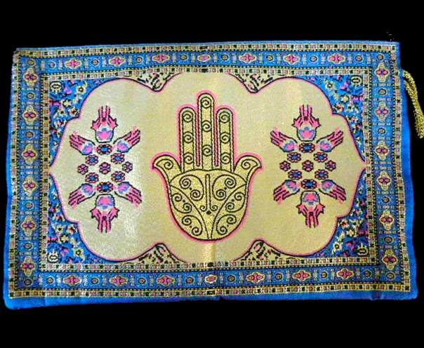 This beautiful bag, features the HAMSA design, is woven of polyester jacquard fabric, with rich gold embellishments.