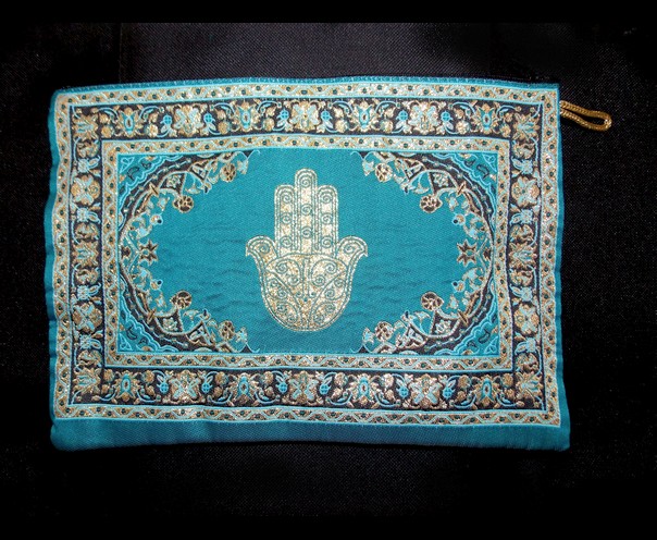 This beautiful bag, features the HAMSA design, is woven of polyester jacquard fabric, with rich gold embellishments