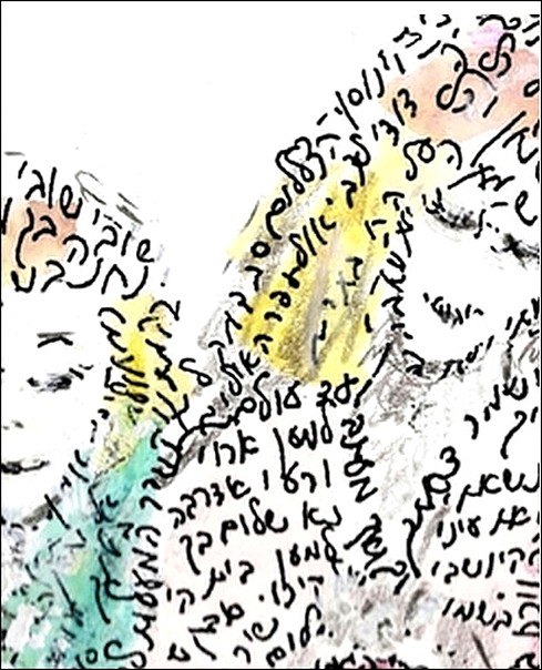 This lithograph features a traditional Jewish Wedding, the microcaligraphy depicts the "Seven Blessings" , "Kiddush" and " Song of Songs".