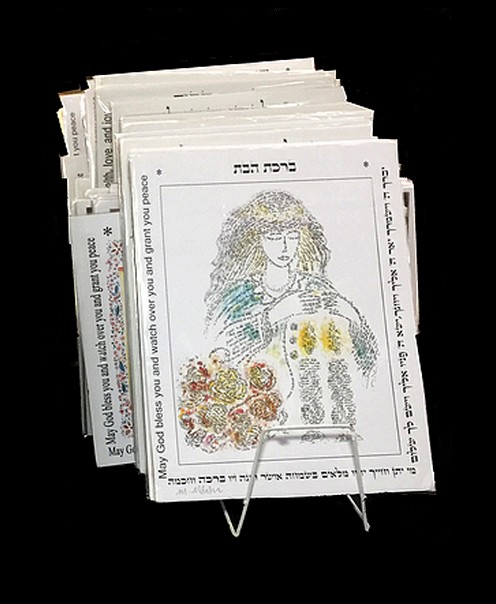 This beautiful Bat Mitzvah design depicts a woman blessing the candles for Shabath, the microcaligraphy is about all the songs welcoming the Shabath, and the Blessing of the candles.
