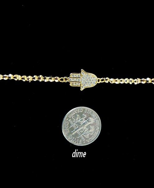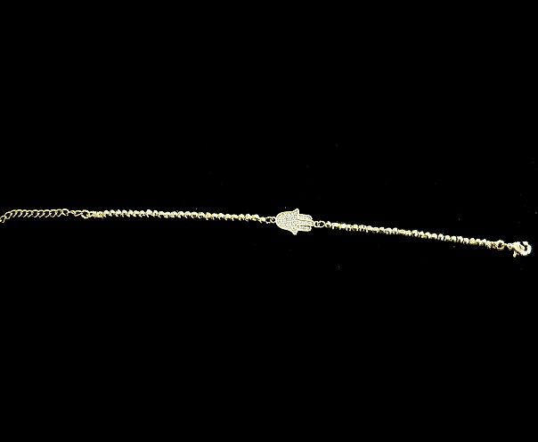 This delicate gold filled bracelet , is a sweet expression of love. A Hamsa, encrusted with white crystals that represent spirituality, purity and judgement, on a simple chain of 15 cms, it has an additional link of 4 cms that allows you to adjust the size of the bracelet, making this an adaptable piece.