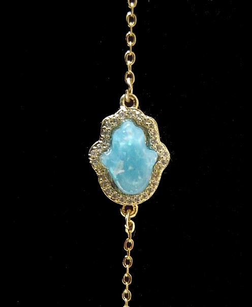 This delicate HAMSA gold filled modern bracelet, with an opal, surrounded with encrusted white crystal stones that represents a spiritual meaning of spirituality, purity and judgement, adding a gentle touch of color and design