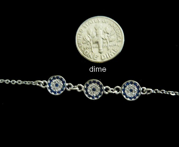 This delicate Lucky Eyes silver filled bracelet, encrusted with white crystals stones that represents a spiritual meaning of spirituality, purity and judgement, and blue crystals that represents protection featuring three lucky eye in the middle. adding a gentle touch of color.