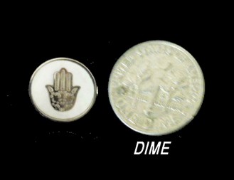 This beautiful unisex modern stainless steel Hamsa bracelet , encrusted in white mother pearl . measures 18 cms plus 4 cms extension.