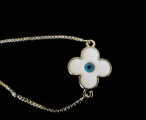 WHITE ENAMEL FLOWER BRACELET #341
