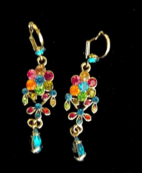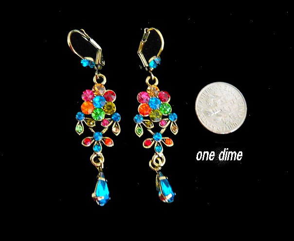These beautiful floral earrings, featuring multi color crystal stones, are very light.