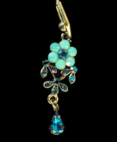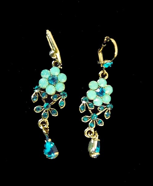 These beautiful floral earrings, featuring turquoise crystal stones, are very light.