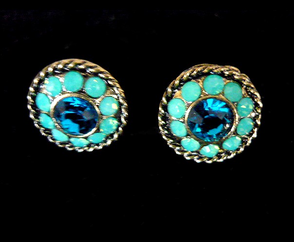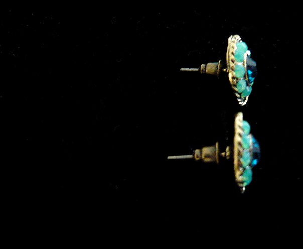 These beautiful floral posted earrings, featuring two tones turquoise crystal stones, are very light.