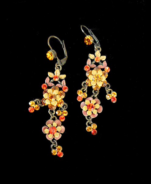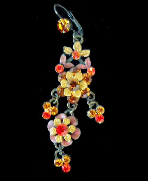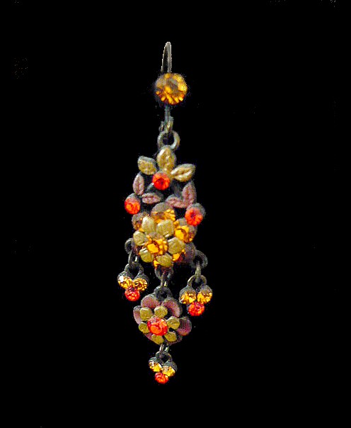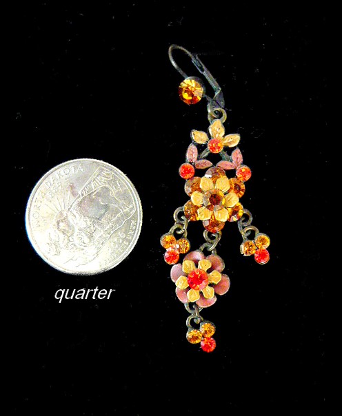 These beautiful floral earrings, featuring orange crystal stones, are very light.