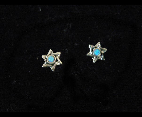 These meaningful sterling silver STAR OF DAVID stud earrings, with a blue opal encrusted in the front, is a blend of luxurious beauty and spiritual elegance. These unique set of earrings with sterling silver posts, are as elegant as they are meaningful. It is a gift every girl or woman would love to wear.