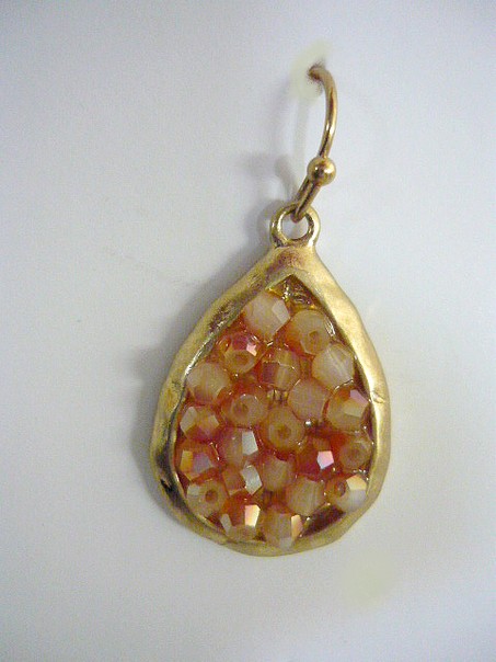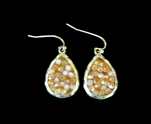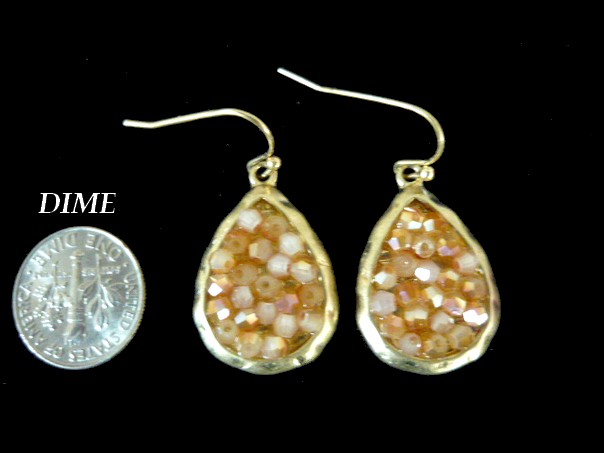 These beautiful drop shape fashion earrings, featuring light peach glass beads with gold tone finish are very light.