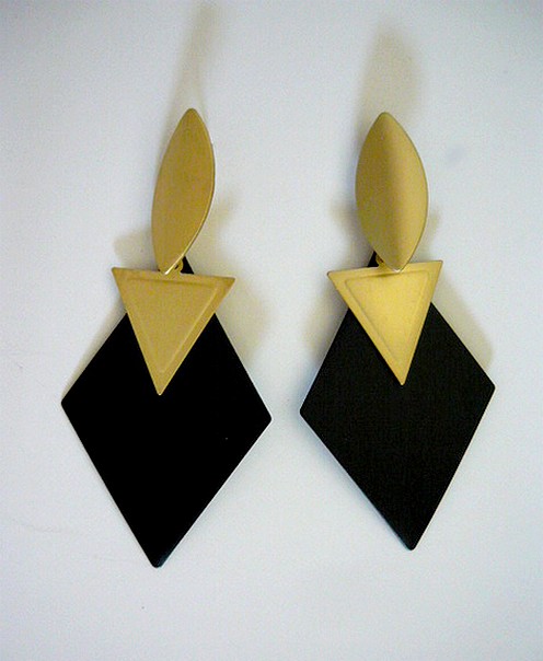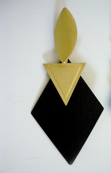 These beautiful geometrical shape earrings, featuring two color geometrical shapes in gold and black are very light.