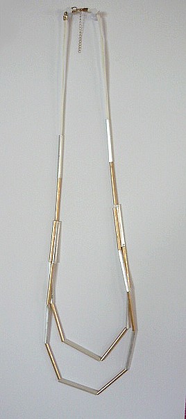This meaningful rhodium gold and silver plated necklace, featuring different tubes , This necklace is a touching way to remind a loved one best wishes for them.
