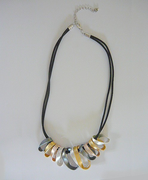 This meaningful rhodium three tone plated necklace, featuring different rings , symbolic of eternity, totality and wholeness, This necklace is a touching way to remind a loved one best wishes for them.