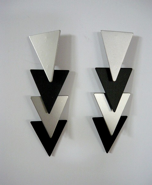 These beautiful Triangles shape earrings, featuring two colors silver and black are very light.