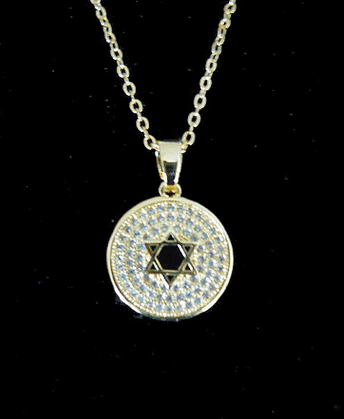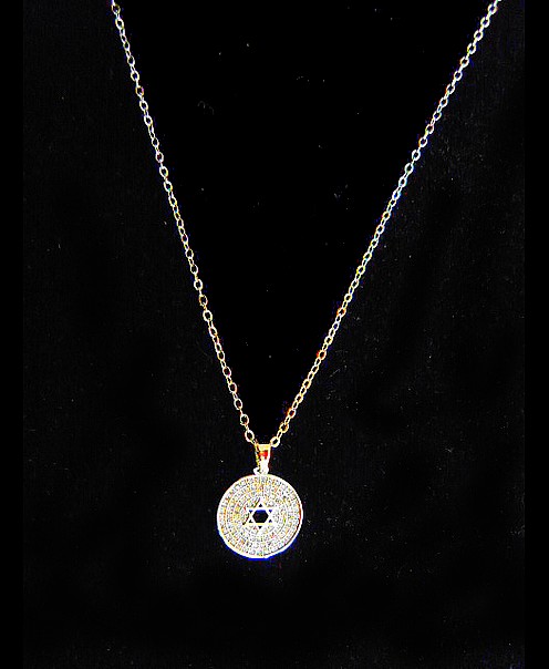 This meaningful Star of David gold filled necklace, on a circular pendant , symbolic of eternity, totality and wholeness. It features in the middle a Star of David, this symbol represents the connection of the soul with the Creator through study and learning the teachings of Kabbalah. Shows great strength and perseverance . It is all encrusted with white crystal stones that represents a specific spiritual meaning, spiritually, purity and judgement.