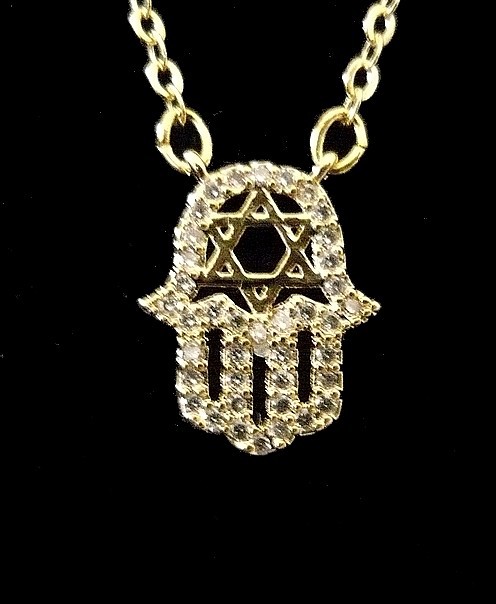 This delicate HAMSA gold filled necklace encrusted with white crystal stones that represents a spiritual meaning of spirituality, purity and judgement. Features a Star of David in the Middle, this symbol universally represents the connection of the soul with the Creator through study and learning the teachings of kabbalah.