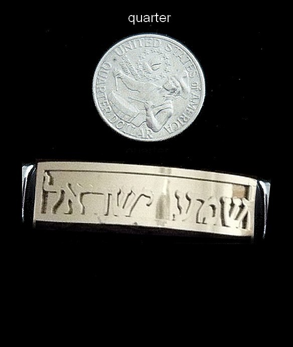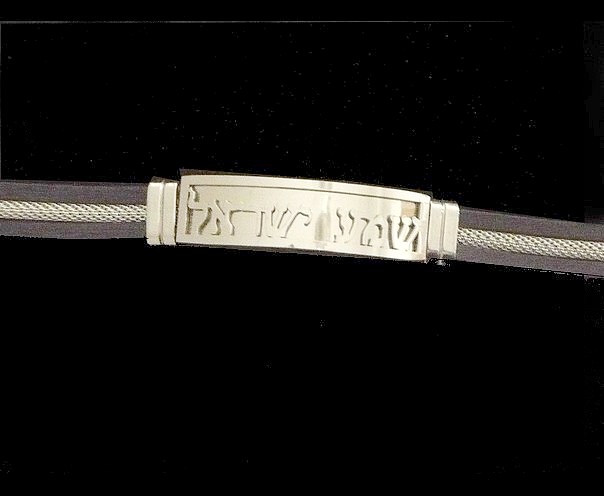 This incredible Shema Israel, bracelet, made with a rubber black strap with a decorative silver tone chain encrusted in the middle, on its center, is a stainless steel silver tone bar, with a silver tone background engraved with the first two words of the Shema Israel prayer , making this bracelet a stylish and meaningful gift. The Shema is the central declaration of faith in Judaism, which expresses the oneness of G-d.