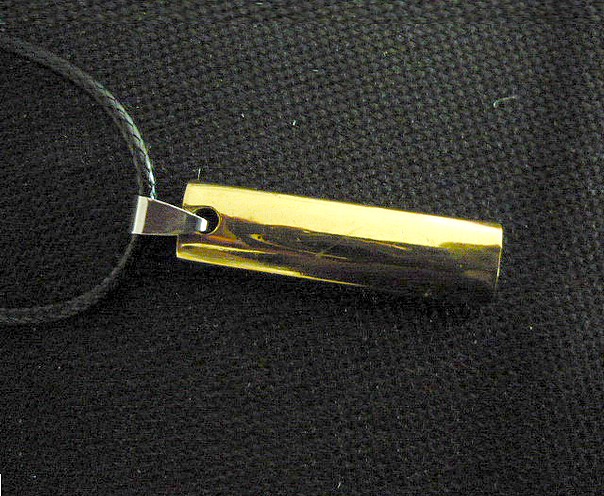 This meaningful two tone (gold and silver ) unisex stainless steel Mezuza necklace, reads in Hebrew "Shema Israel"