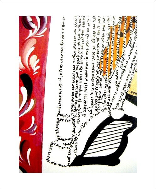 This form of artwork is created from Biblical texts that forms and image when viewed from a distance. This is an ancient Jewish form of embellishment the Biblical texts, the purpose of this type of art, was to preserve and stabilize the accuracy of the Sacred texts.