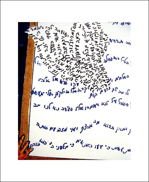 This form of artwork is created from Biblical texts that forms and image when viewed from a distance. This is an ancient Jewish form of embellishment the Biblical texts, the purpose of this type of art, was to preserve and stabilize the accuracy of the Sacred texts.