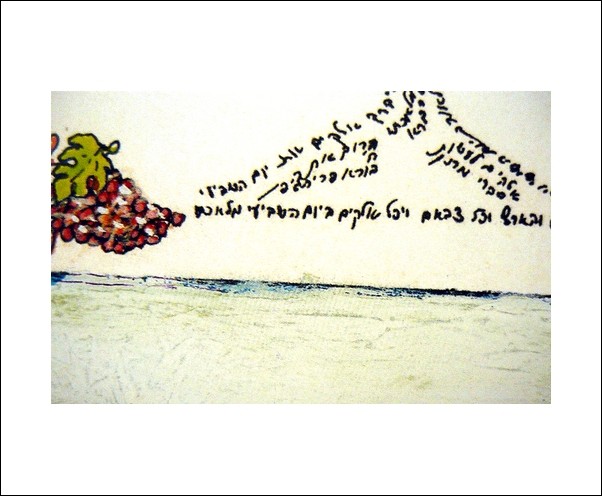 This Microcalligraphy is composed of the whole Blessing of the Wine: "KIDDUSH". This form of artwork is created from Biblical texts that forms and image when viewed from a distance. This is an ancient Jewish form of embellishment the Biblical texts, the purpose of this type of art, was to preserve and stabilize the accuracy of the Sacred texts. It is made and signed by the artist Moshe Monzon This microcaligraphy is available unframed in a size of 9’’x 6’’