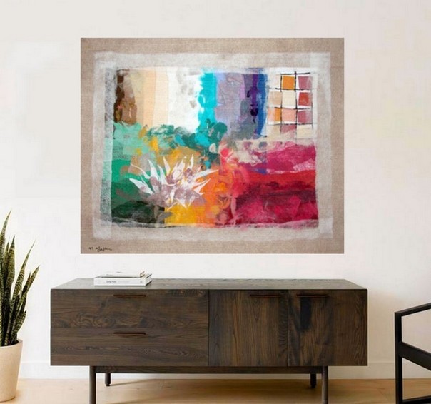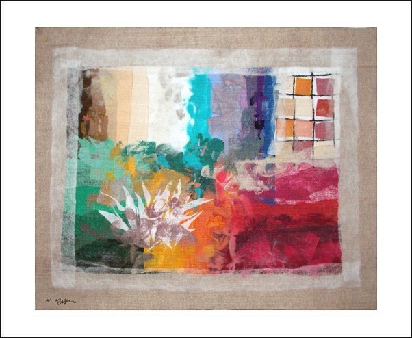 This unique tapestry reflects the stately elegance of the Mediterranean landscape and the contemporary sophistication of modern abstract art, harmonizing perfectly with any decoration scheme or art collection. Moshe Monzon's tapestries will interest not only Art collectors and connoisseurs but also Interior Decorators.