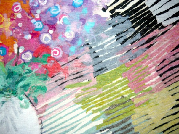 made by the artist Moshe Monzon, is made as a collage of synthetic fibers then felted in a special needle loom that weaves all the layers together.
