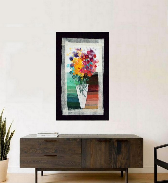 This work of art comes protected and ready to hang with canvas and two wooden sticks with 2 hanging hooks on the back.