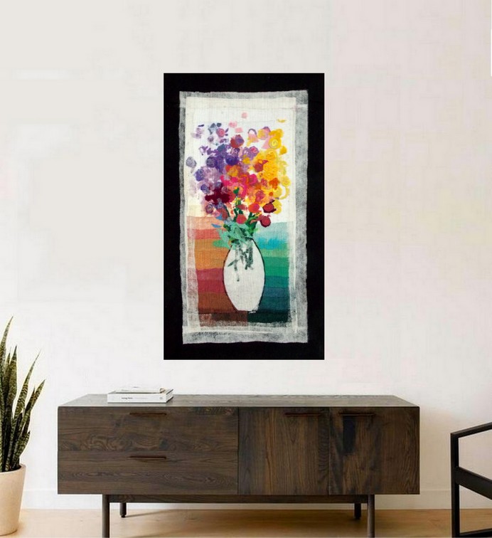 This works of art in this unique textile technique with acrylic fibers by the artist moshe monzon have been showed and hanging around the world for more than 30 years and are forever