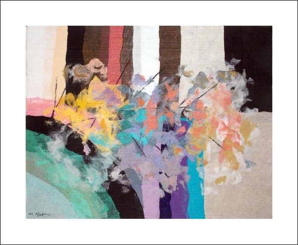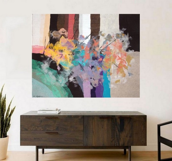 This unique tapestry reflects the stately elegance of the Mediterranean landscape and the contemporary sophistication of modern abstract art, harmonizing perfectly with any decoration scheme or art collection. Moshe Monzon's tapestries will interest not only Art collectors and connoisseurs but also Interior Decorators.