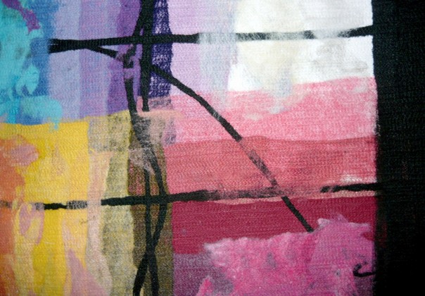 made by the artist Moshe Monzon, is made as a collage of synthetic fibers then felted in a special needle loom that weaves all the layers together.