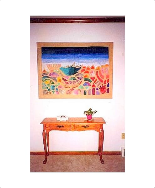 This beautiful tapestry Dove of Peace in Jerusalem, is hanging in a private home in Bettendorf, IA. The size of the tapestry is 5' x 4'