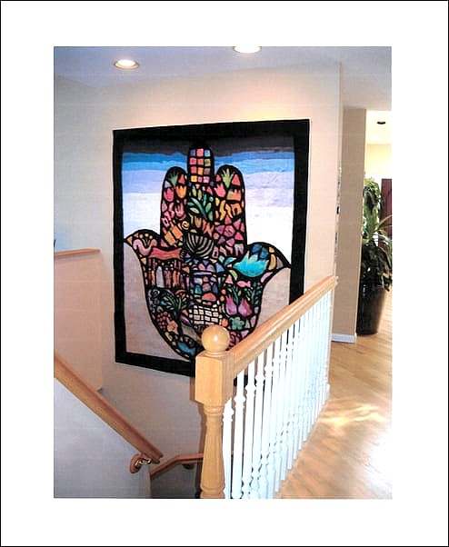 This beautiful tapestry Hamsa, was commissioned and is hanging in a private home in New City, NY. The size of the tapestry is 5" x 8'