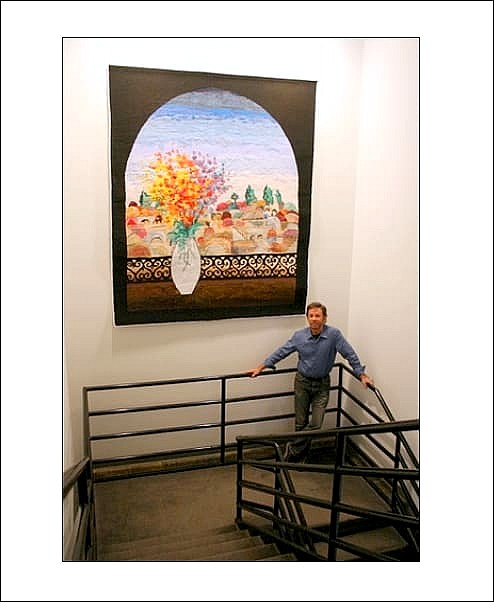 This beautiful tapestry Jerusalem Window, was commissioned and is hanging in a corporate office in Texas. The size of the tapestry is 9' x 6'