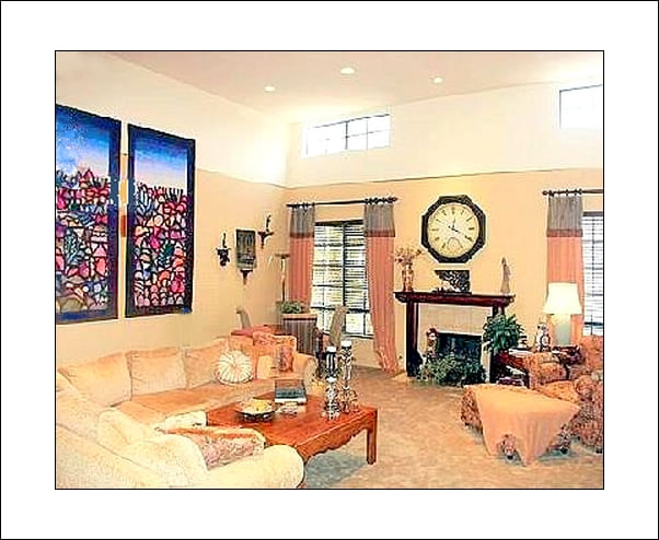 These two beautiful tapestries, depicting two Jerusalem windows, creating a unique diptych, were commissioned and are hanging in a private home in Sherman Oaks, CA. The size of each of the tapestries are 4' x 8'