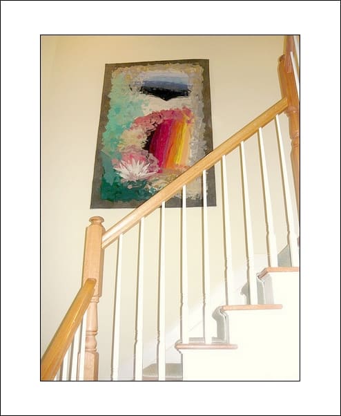 This beautiful tapestry Paradise, is hanging in a private home in Livingstone, NJ. The size of the tapestry is 4' x 6'