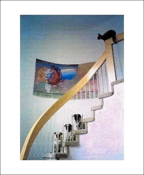 This beautiful tapestry Spring Bouquet, is hanging in a foyer in a private home in West Bloomfield, MI. The size of the tapestry is 4' x 6'. It is hanging by the staircase on a curved wall.