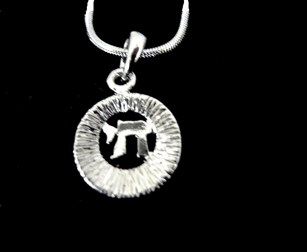 This meaningful rhodium CHAI necklace. the Hebrew word for "Life" ,on a circular pendant symbolic of eternity, totality and wholeness makes this pendant, something anyone would love to wear.