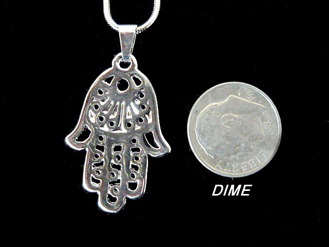 This meaningful rhodium HAMSA necklace, with elegant detailed cut out swirls expresses good wishes and carries the giver's wish of happiness to the recipient.